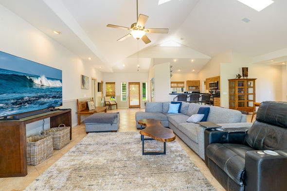 Set on lush, parklike acreage, the property feels like a private estate. Tropical flora thrives here—avocados, citrus, cacao, bananas—nearly everything grows in this fertile Holualoa soil. The grounds provide serenity, privacy, and room to create your own Hawaiian lifestyle.